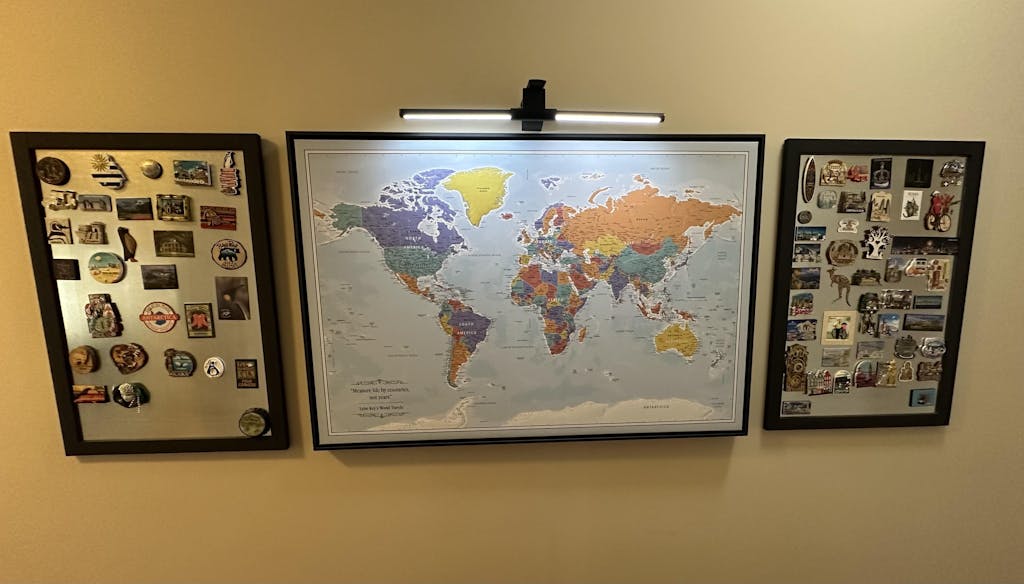 Every Push Pin Travel Map is handcrafted in The United States of America (Denver, CO to be exact!). We take great pride in every map we produce. We start by professionally dry mounting your map to sturdy foamcore board. Our framing experts then place the map in the stylish frame of your choice, which we build in house. Next a wire hanging kit is installed, so your map arrives ready to hang right out of the box. We even include a nail and hanger so you can easily hang your map on the wall. Find out more details as well as answers to popular questions in ourFAQ section here.