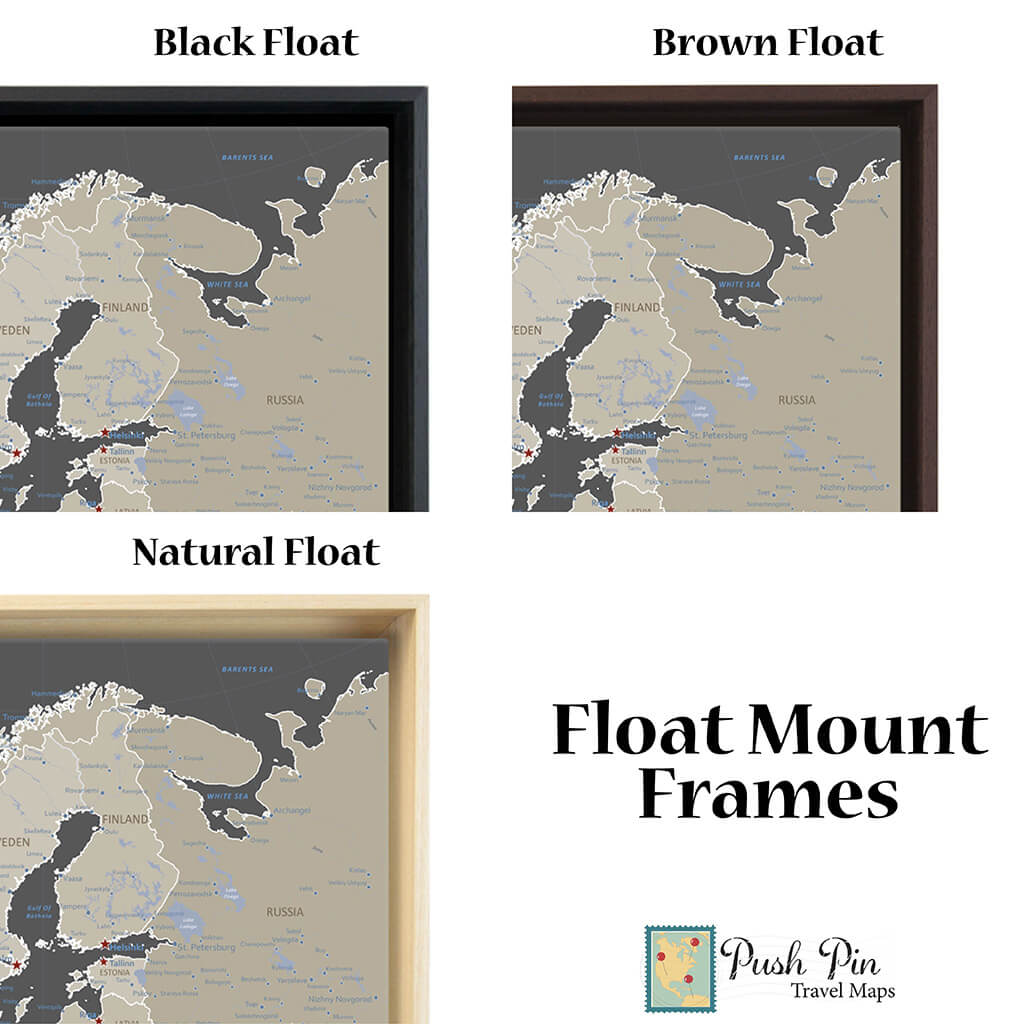 Every Push Pin Travel Map is handcrafted in The United States of America (Denver, CO to be exact!). We take great pride in every map we produce. We start by professionally dry mounting your map to sturdy foamcore board. Our framing experts then place the map in the stylish frame of your choice, which we build in house. Next a wire hanging kit is installed, so your map arrives ready to hang right out of the box. We even include a nail and hanger so you can easily hang your map on the wall. Find out more details as well as answers to popular questions in ourFAQ section here.