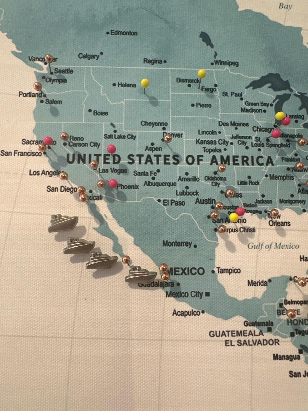 Cruise Ship Push Pins - Gold & Silver Metal Cruise Ship Map Pins